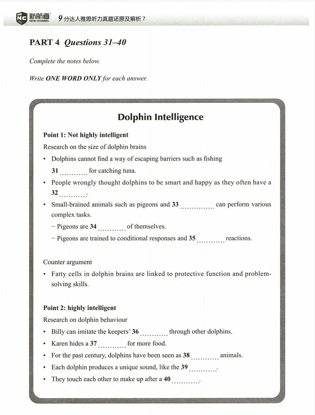 点评:如果烤鸭们在考前十天开始刷《9分达人7》真题,那么作为test1part4的题目,这十道题必然轻松拿下。同时作为常考的,动物智力智商,相关话题大家可以参考OG8section4,积累话题词汇以及学科背景。