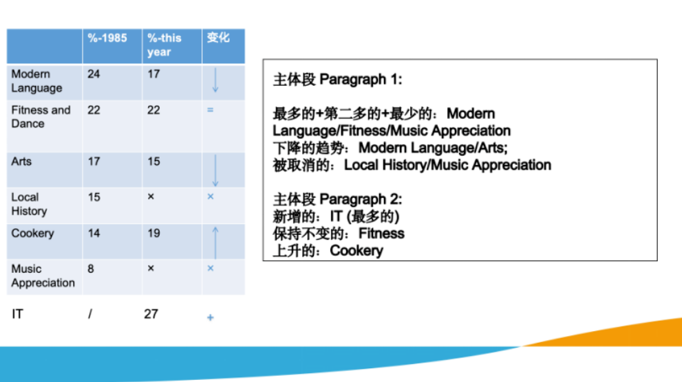 引出趋势变化。先写被取消的、下降的数据;再写新增的、上升的数据。