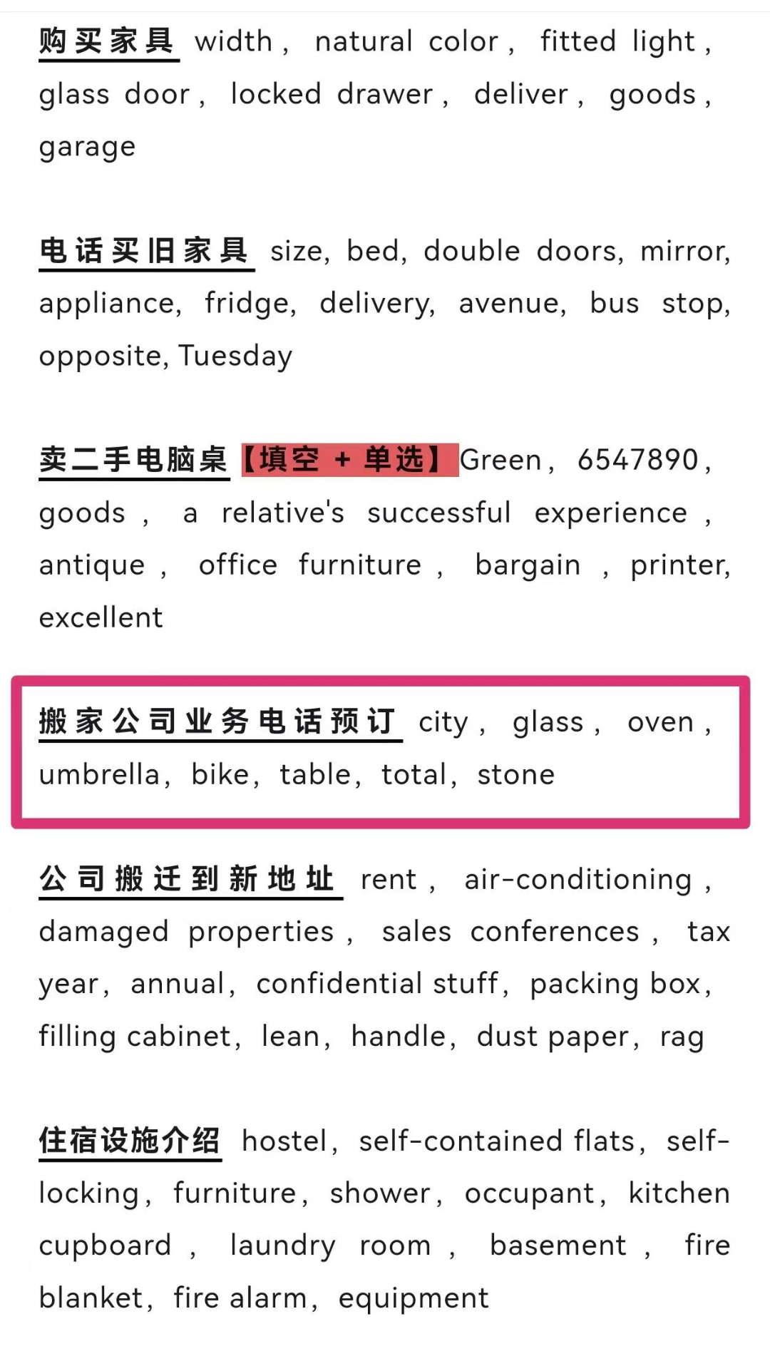 卖二手电脑桌 【填空 + 单选】Green,6547890,goods,a relative's successful experience,antique,office furniture,bargain , printer, excellent