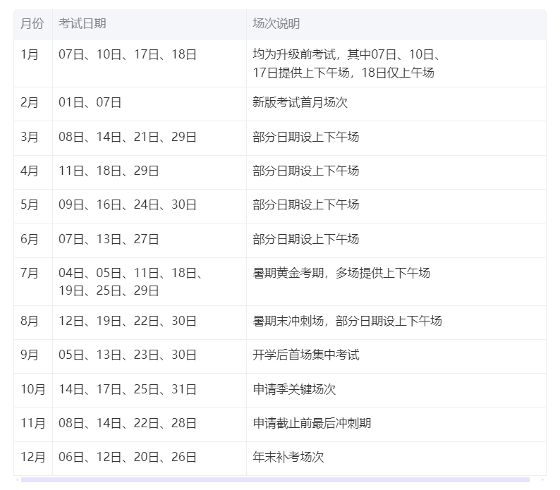 *注:橙色字体标注日期同时提供上下午考试场次,具体以官网实时信息为准。
